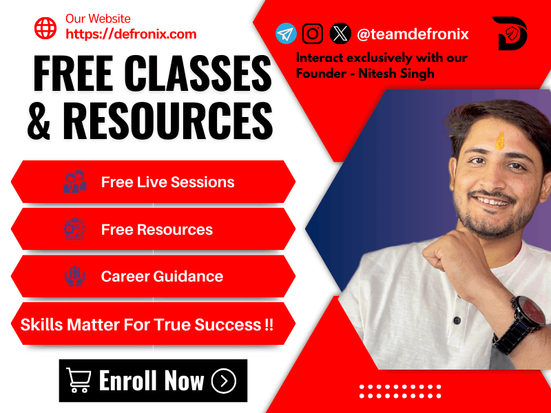 Hello All Cyber Security Enthusiasts !! I am Nitesh Singh aka Technical Navigator, Founder Of Defronix, presenting an opportunity for you all to learn with me For Free. I'm offering FREE sessions and valuable resources to help you excel in your studies. Whether you're looking to boost your skills, expand your knowledge, or simply explore, this is your chance to seize the opportunity. Join me for these exciting classes and unlock a world of possibilities. Together, we'll embark on a journey of learning and growth that will empower you to achieve your goals. Stay tuned for more details on the upcoming sessions, resources, schedules, and topics. Let's make learning not just accessible, but also incredibly enjoyable. Your future awaits, and it starts here, for FREE! Spread the word, invite your friends, and let's embark on this educational adventure together. See you in class! 📓📝🌐 Nitesh Singh Founder Defronix